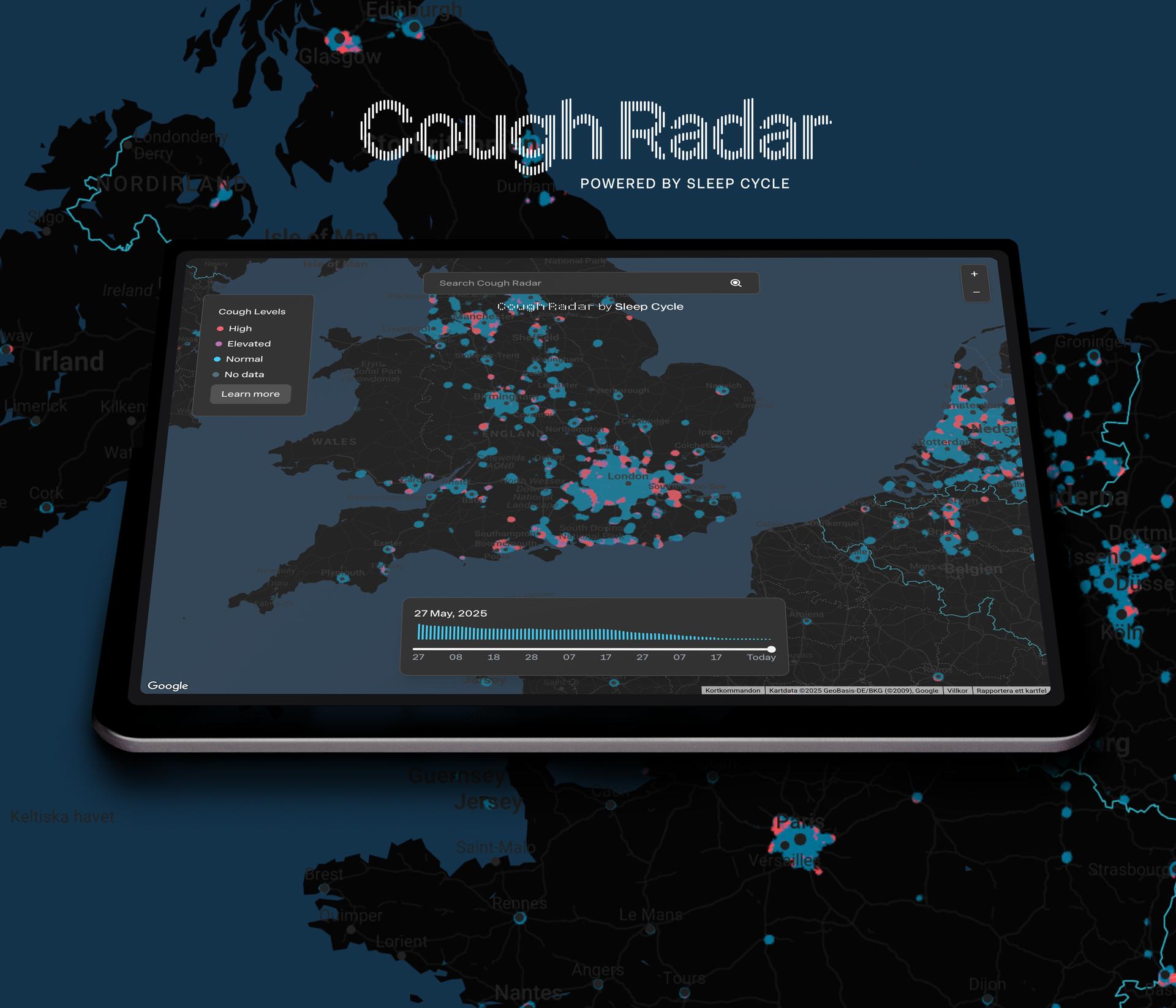 Sleep Cycle, the leading sleep technology company, today launched its award-winning feature, Cough Radar, as a standalone web solution—marking the company’s first browser-based experience focused on live health insights. Powered by anonymized data from Sleep Cycle users, this interactive map brings Sleep Cycle’s patented AI and sound analysis technology beyond the mobile app, transforming cough signals into actionable intelligence.