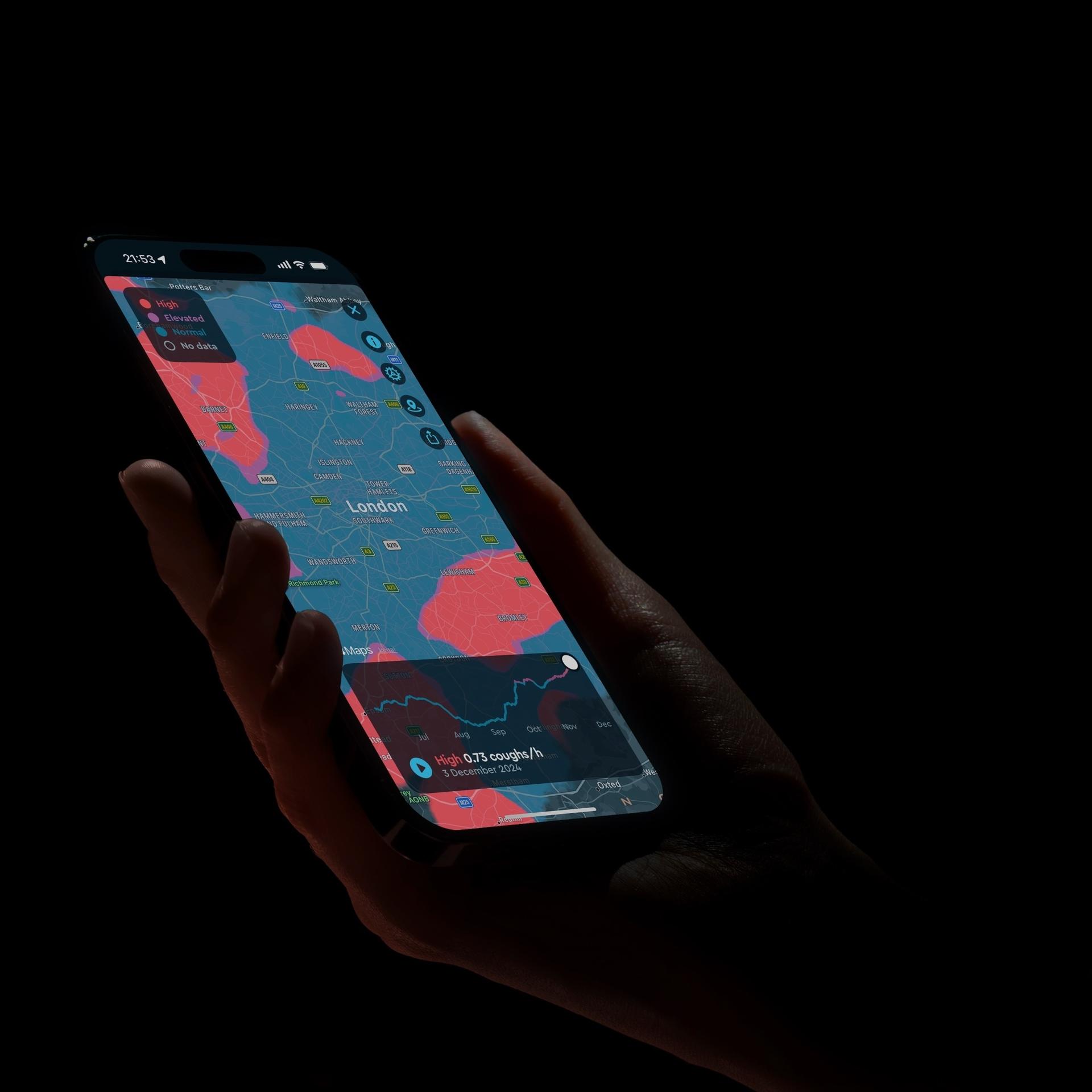 In collaboration with researchers from Cambridge University, our ongoing study uses Cough Radar, our unique data source, to examine the short-term impacts of air pollution on health. Early findings show a strong association between rises in air pollution and surges in average cough rates among Sleep Cycle users in affected areas.